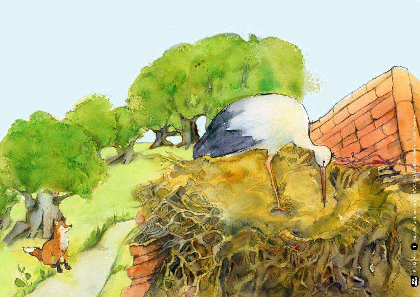 Der Fuchs und der Storch. Eine Fabel von Äsop. Kamishibai Bildkartenset. | Lefin-Kirsch, Monika