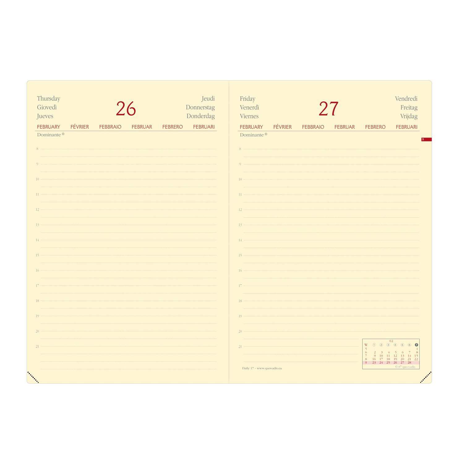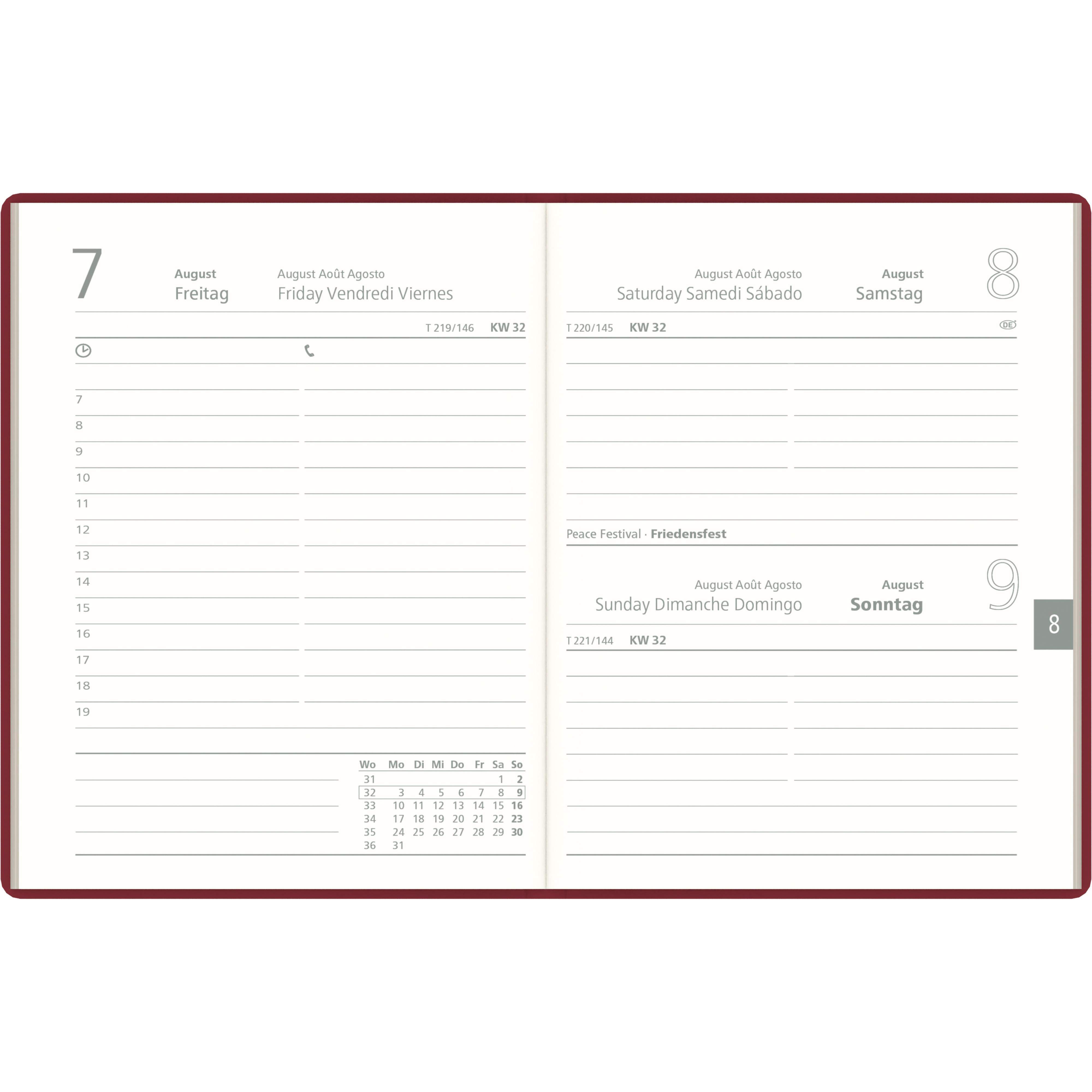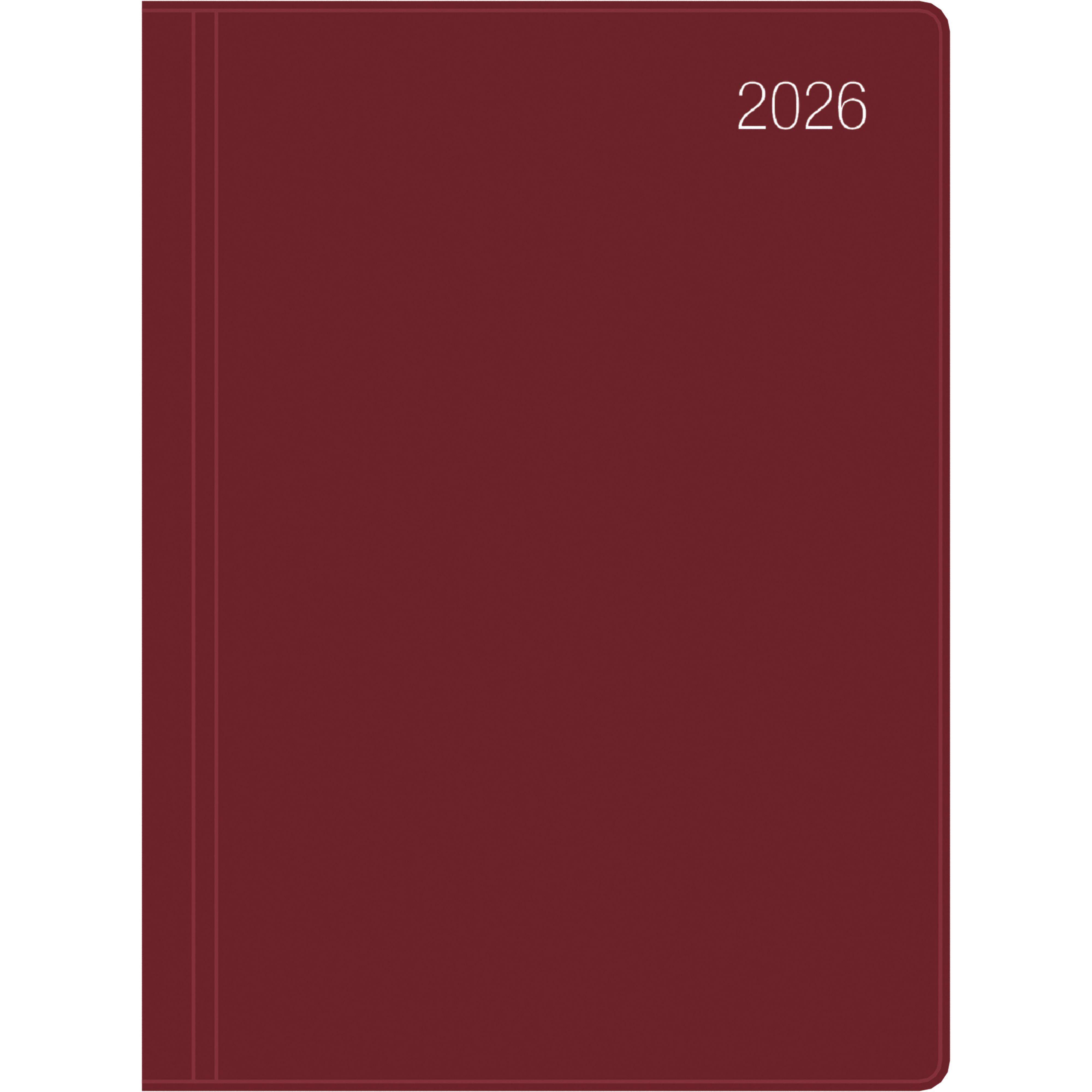 Taschenkalender bordeaux 2026 - Bürokalender 10,2x14,2 - 1 Tag auf 1 Seite - flexibler Kunststoffeinband - Stundenein...