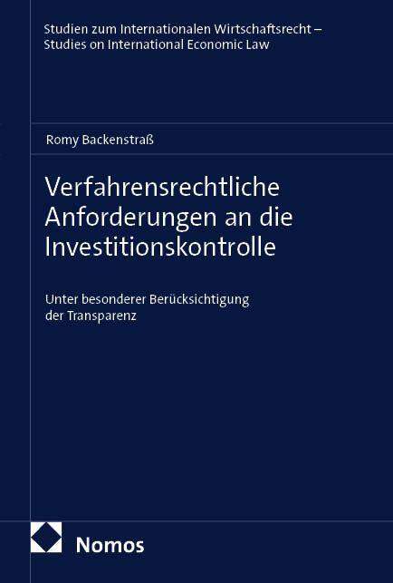 Verfahrensrechtliche Anforderungen an die Investitionskontrolle | Backenstraß, Romy